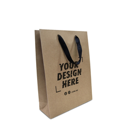 Custom Printed - Kraft Bags - Premium Kraft Brown Medium Gift Bag - Black Ribbon