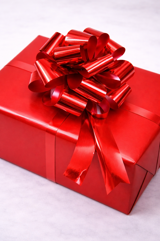 4. Use the extra strands of thin ribbon to wrap around your present, cut them or curl if desired! Fluff and move around the loops to get the perfect full bow!