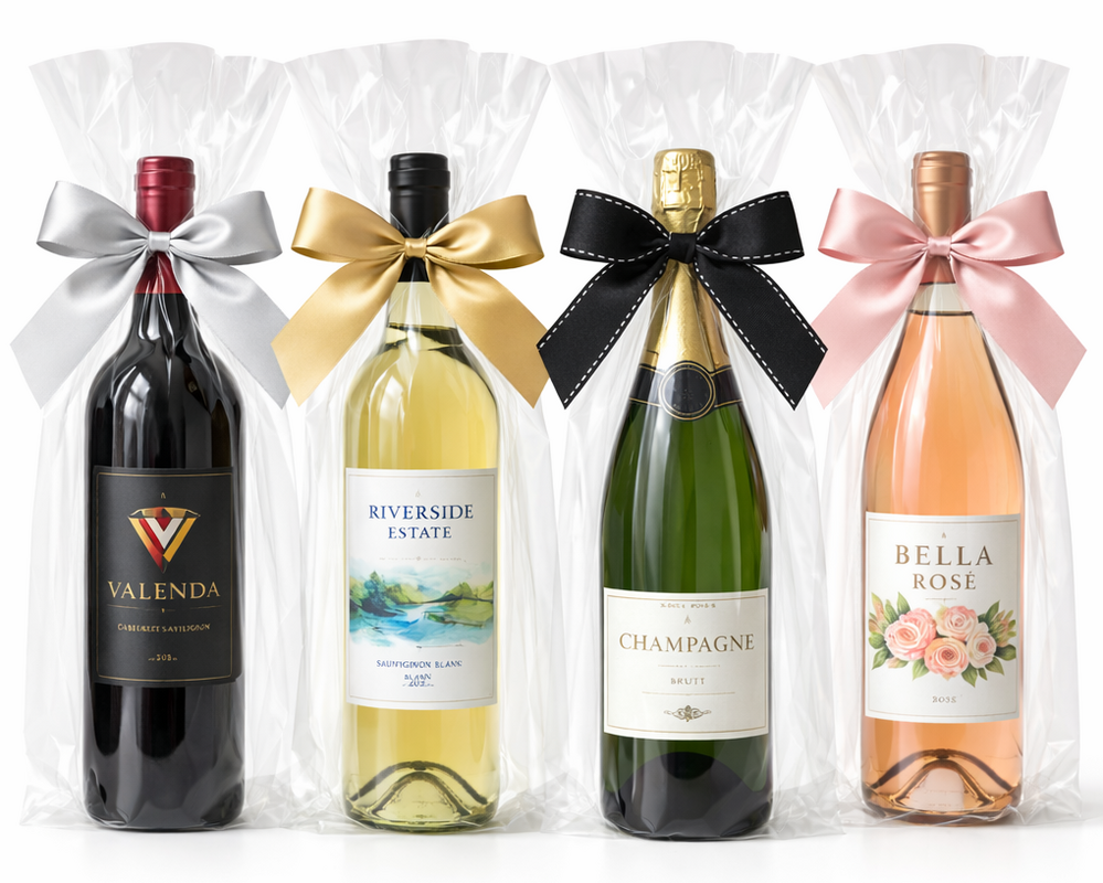If you're looking to create a professional and polished presentation for your wine bottle gifts, these clear cello wine bags are a must-have. They are easy to use and offer a sleek and sophisticated finish that is sure to impress. So, whether you're a business owner or an individual, order these clear cello wine bags today and elevate your gifting game!