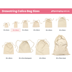 Custom DTG Printed & Personalised Natural Cotton Calico Bags with Drawstrings