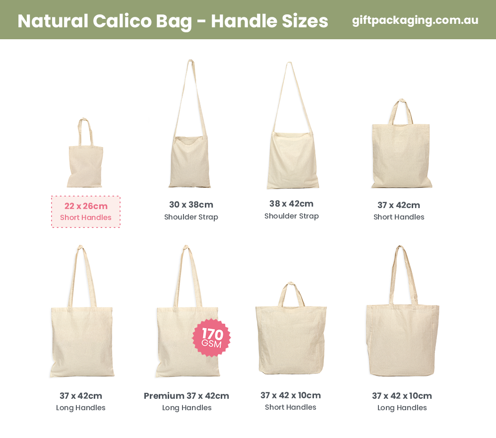 Custom DTG Printed & Personalised Natural Cotton Calico Bags with Two Short Handles