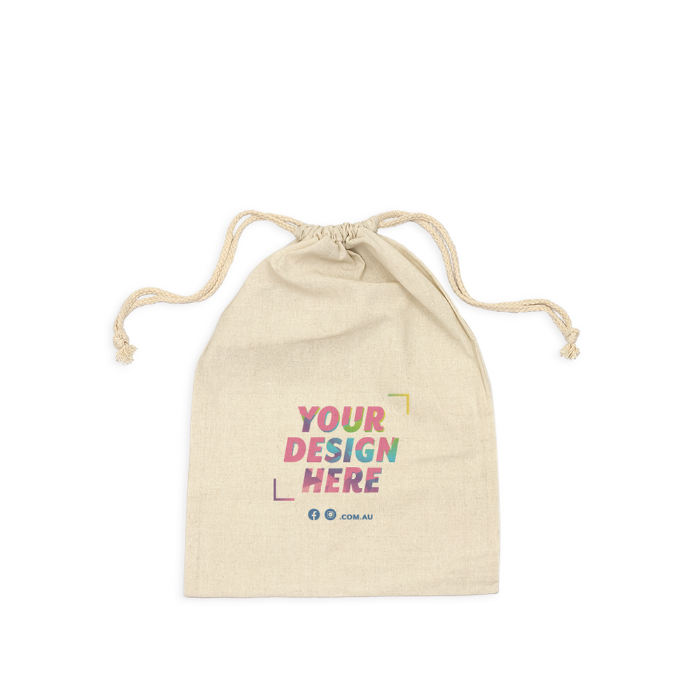 Custom DTG Printed & Personalised Natural Cotton Calico Bags with Drawstrings