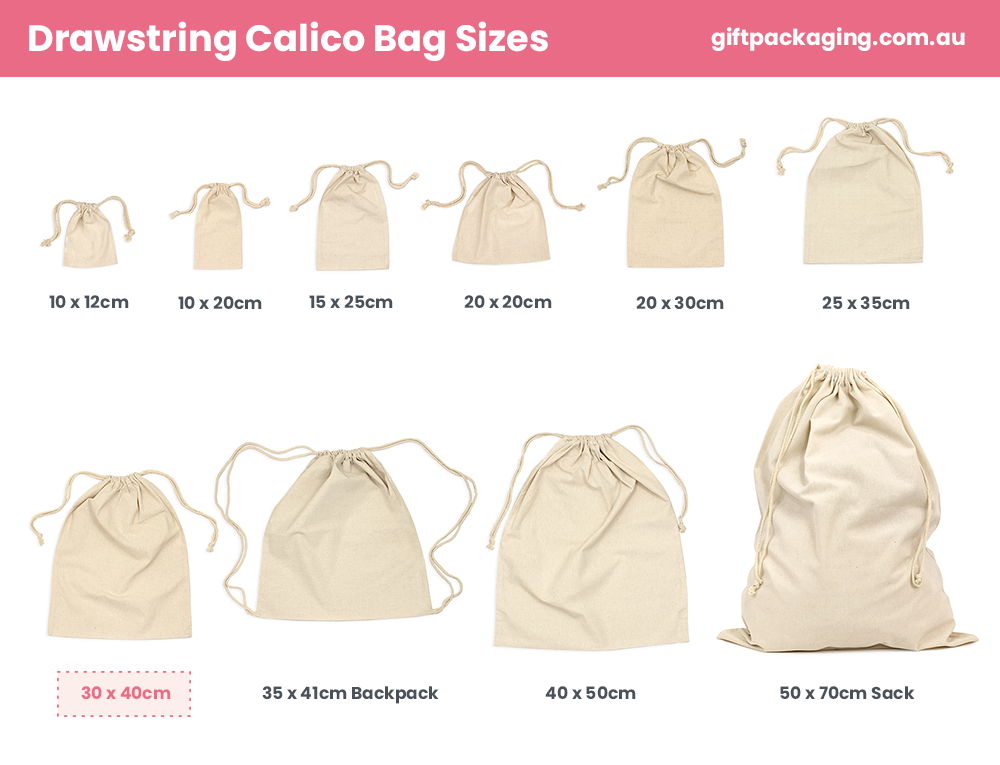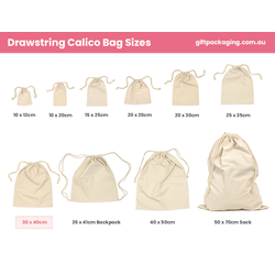Custom DTG Printed - Natural Calico Bags - 30cm x 40cm with Drawstrings