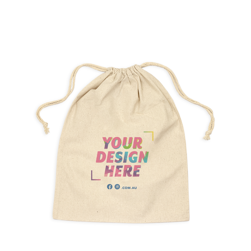 Custom DTG Printed & Personalised Natural Cotton Calico Bags with Drawstrings