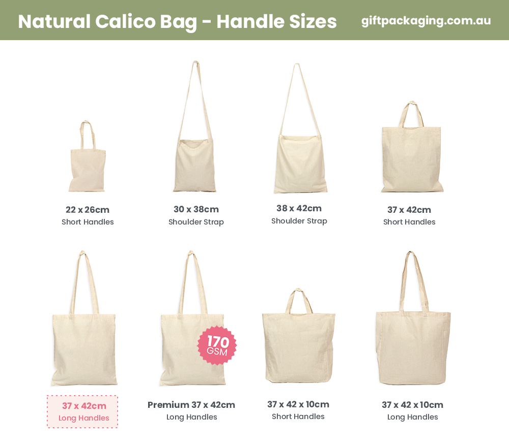 Custom DTG Printed & Personalised Natural Cotton Calico Bags with Two Long Handles