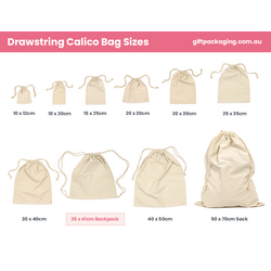 Custom PREMIUM DTF Printed - Natural Back Pack Calico Bags - 35cm x 41cm with Drawstrings