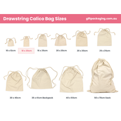 Custom PREMIUM DTF Printed & Personalised Natural Cotton Calico Bags with Drawstrings