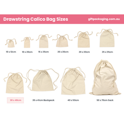 Custom PREMIUM DTF Printed - Natural Calico Bags - 30cm x 40cm with Drawstrings