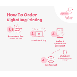 For new customers please feel welcome to use the Design Now tool OR email your artwork to shop@giftpackaging.com.au / reply to your order confirmation email. For returning customers we generally keep your artwork on file. For every order, we will return to you with a digital proof to approve before we can produce your order.Please supply a Vector artwork file or 300ppi resolution at actual size for all other image types (otherwise you may risk reduced print quality). We can assist with minor artwork editing, however, complex editing may incur an artwork fee.