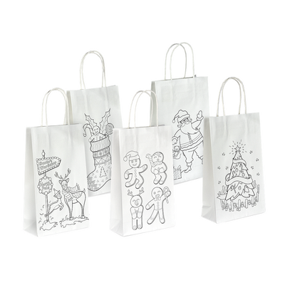 Kraft Bags - Colouring Christmas Assortment - Small - White