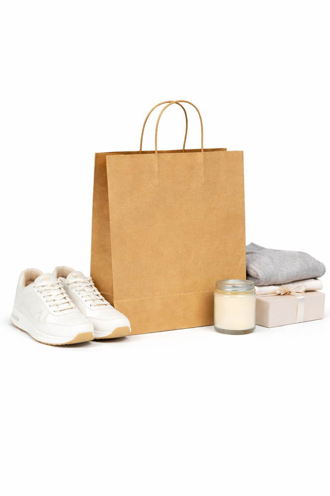 Our Kraft Brown Paper Gift Bag comes with matching sturdy twisted kraft paper handles for easy carrying purposes. They measure 330mm(h) x 254mm(w) x 127mm(gusset) at 120gsm. They're a strong versatile kraft paper gift bag and are a great alternative to plastic bags. They are biodegradable and recyclable, perfect for our eco-conscious customers. Purchase in bulk to get the best prices on our wholesale paper bags, be sure to set up a wholesale account when ordering 1000 units or more!