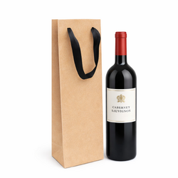 Our Premium Single Wine Bottle Kraft Brown Paper Gift Bag comes accessorised with beautiful black grosgrain ribbon handles. They measure 390mm(h) x 110mm(w) x 90mm(gusset) at 150gsm! The uncoated kraft paper is thick which gives them a premium finish and also includes both handle reinforcement and base cards for extra strength. They are biodegradable and recyclable, perfect for our eco-conscious customers - please note you will need to remove the ribbon handles, as they are not recyclable. Purchase in bulk to get the best prices on our wholesale paper bags, be sure to set up a wholesale account when ordering 1000 units or more!