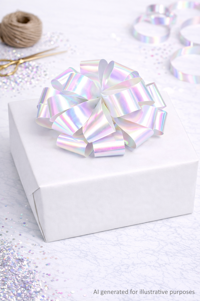The bow itself is 15cm in Diameter. Each bow comes with adhesive strip on the back so that the bows can be applied to gifts quickly and easily!