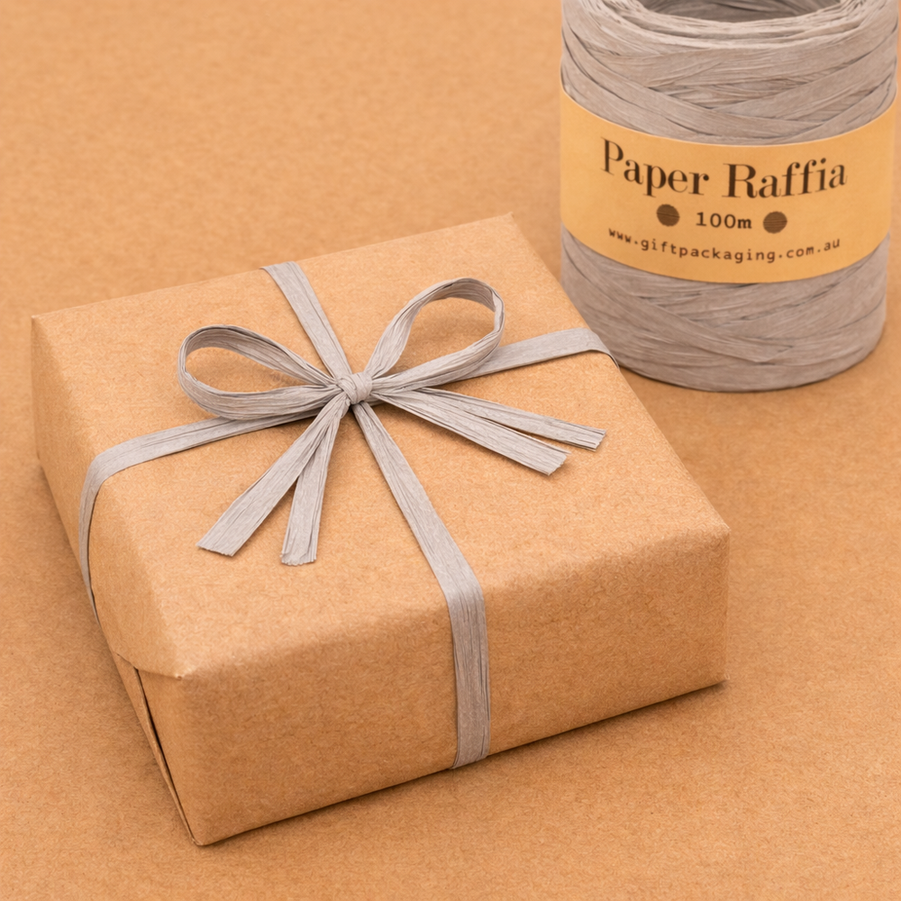 Grey Paper Raffia, 5mm x 100metres.