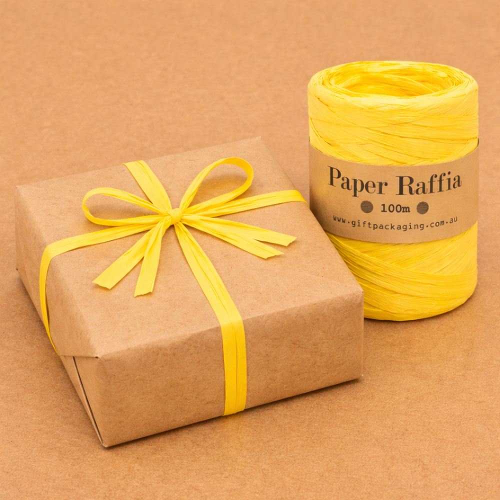 Lemon Paper Raffia, 5mm x 100metres.