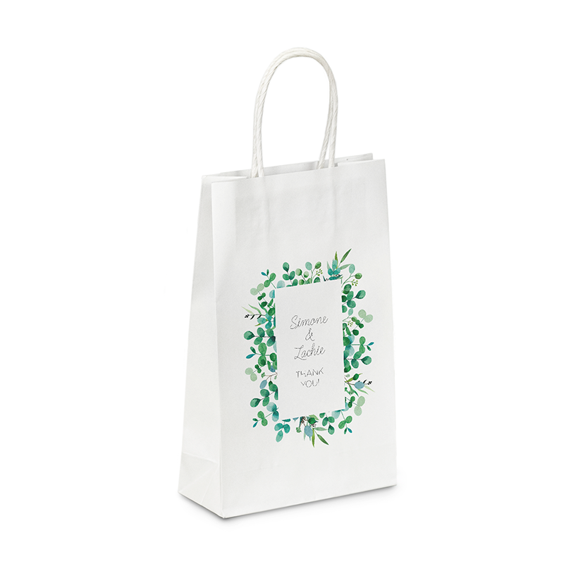 Personalised Wedding Bags - Small White Kraft Bag - Green Floral