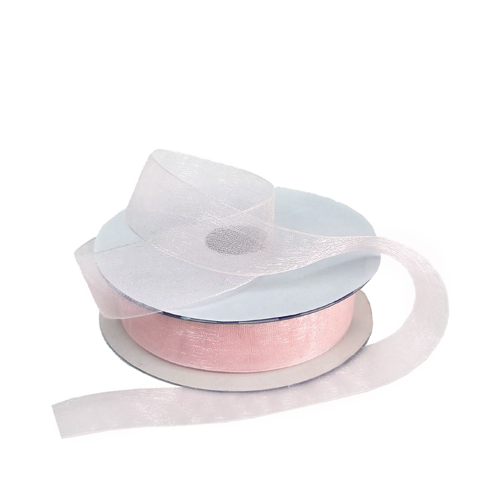 Sheer Organza Woven Edge - 25mm x 25m - Light Pink
