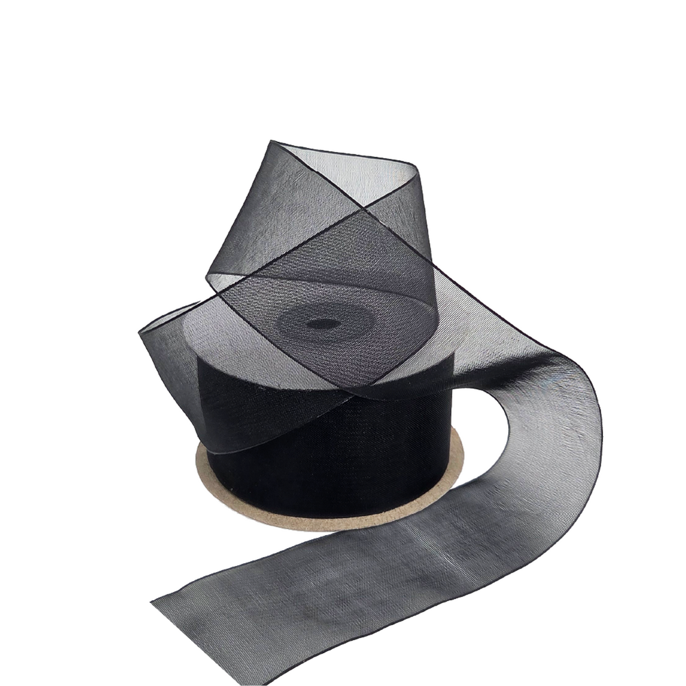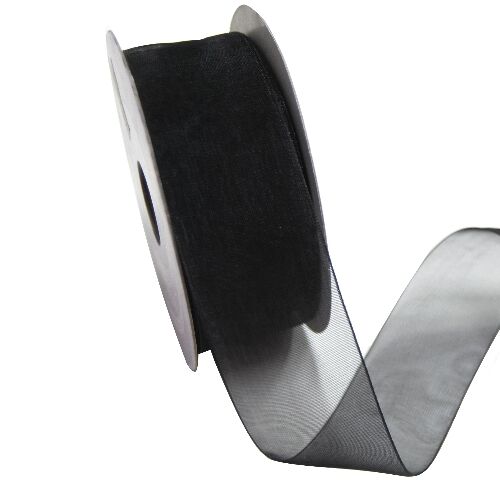 Sheer Organza Woven Edge - 38mm x 25m - Black