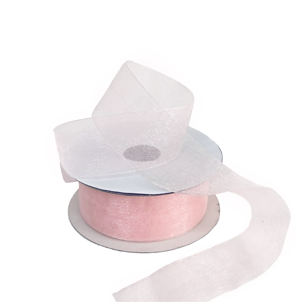 Sheer Organza Woven Edge - 38mm x 25m - Light Pink