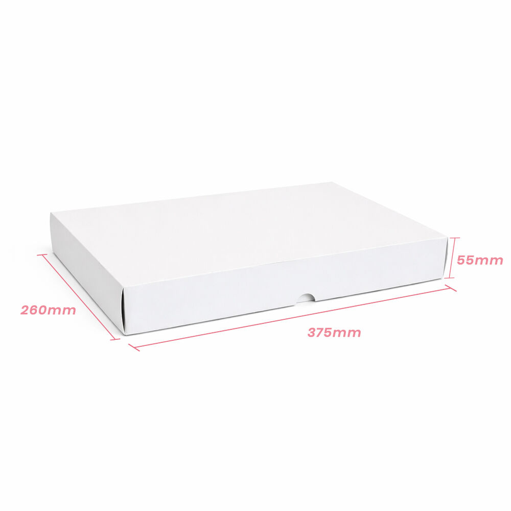 Our White Shirt Gift Box is a classic, clean and professional packaging solution designed to complement any gift or product presentation. Made from durable 300gsm paperboard and finished with a smooth gloss varnish, this two-piece white gift box includes a separate base and lid for a premium, modern unboxing experience. Measuring 375mm(l) x 260mm(w) x 55mm(d), this size is ideal for folded apparel including shirts, blouses and lightweight garments. Its shallow depth also makes it perfect for slim, flat or delicate items, offering a neat and beautiful presentation.