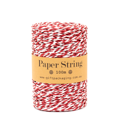 Paper Twine - 2mm x 100metres - Red/White Paper String