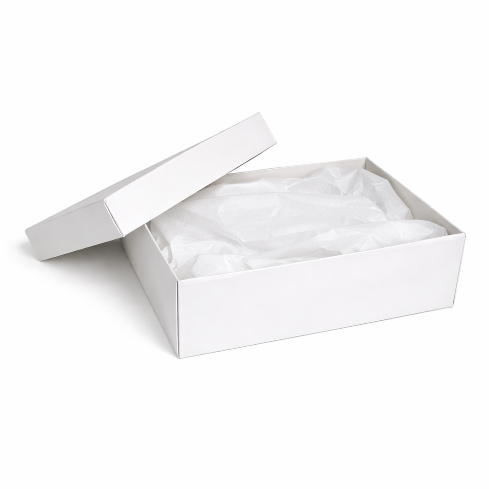 Our high quality white tissue paper measures 750mm x 500mm in size and is 17gsm thick. The tissue is acid-free and colourfast, this means it won’t tarnish or stain your products, ensuring long-lasting brilliance and preserving the quality of your creations. Perfect for gift wrapping clothing, filling gift boxes, decorating gift bags, creating tissue pom-poms, and more!