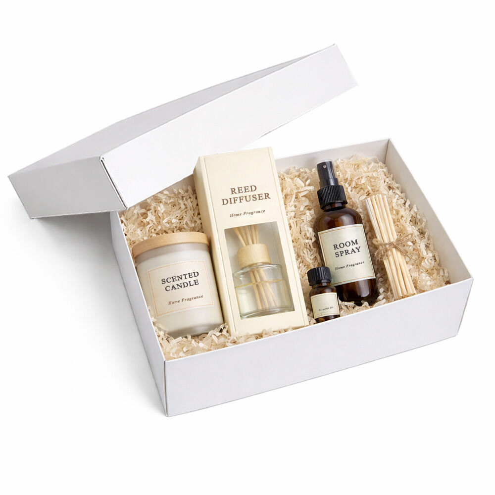 - Home fragrance gift sets (reed diffuser, small candle, air freshener)
